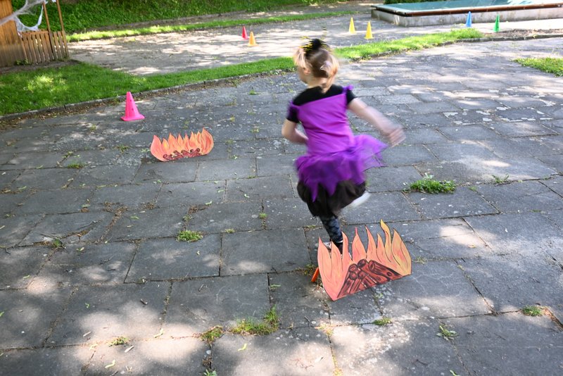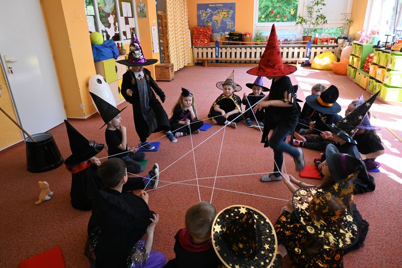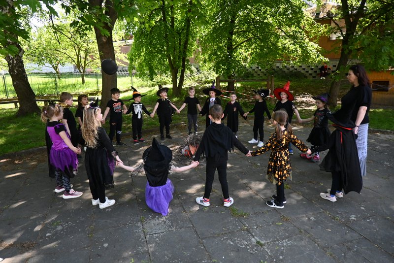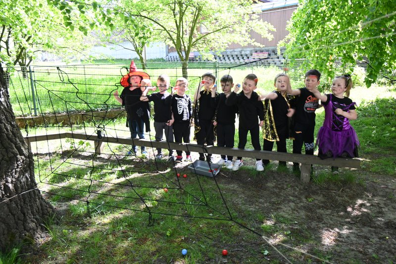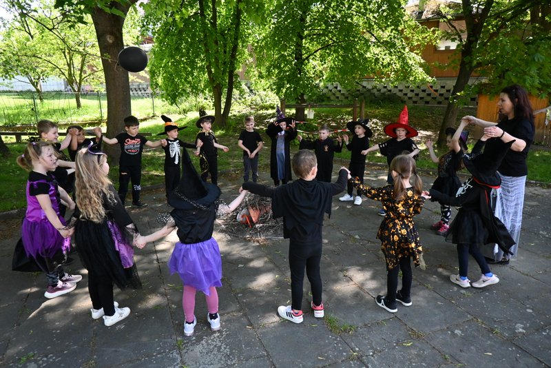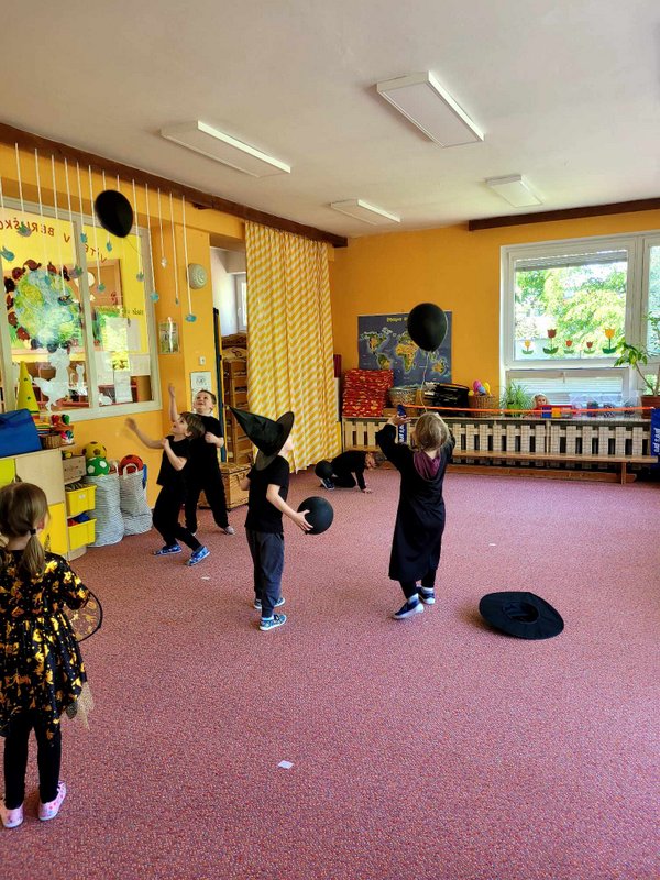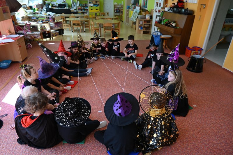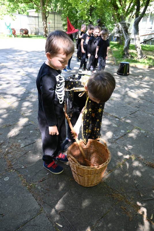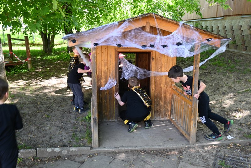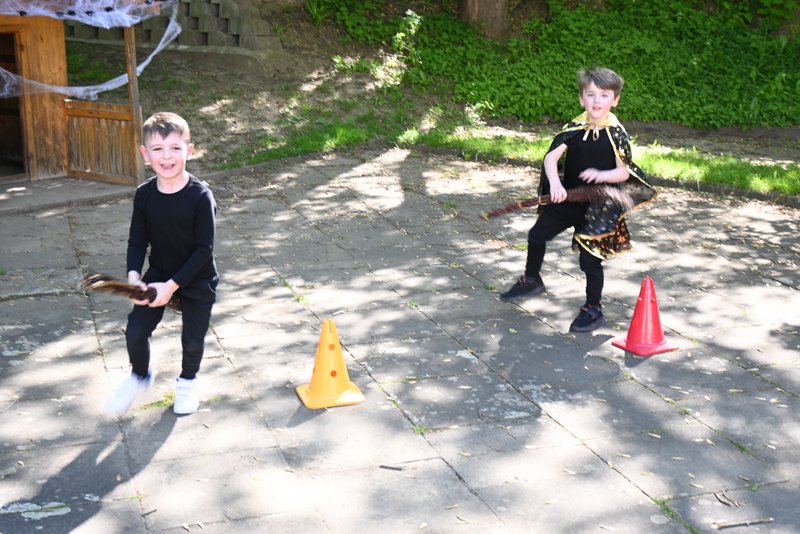 Bylo to ČAROKRÁSNÉ! Moc jsme si to všichni užili! Jízdu na koštěti, hledání pavoučků v písku, strefování do pavučiny, manipulaci s obří vařechou, hledání havrana a ukryté čarodějky, snášení pavoučka z pavučiny, přeskakování ohně, hledání klacíků na „ohýnek“, výroba pavučiny a mnoho dalšího… 🪄🧙🧹🕷️🕸️