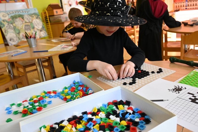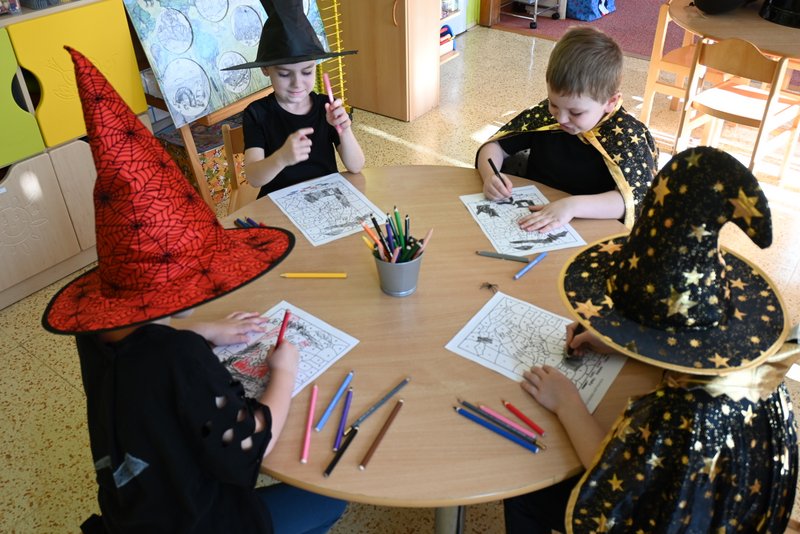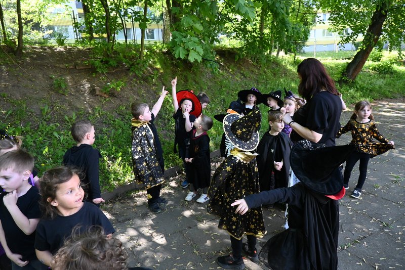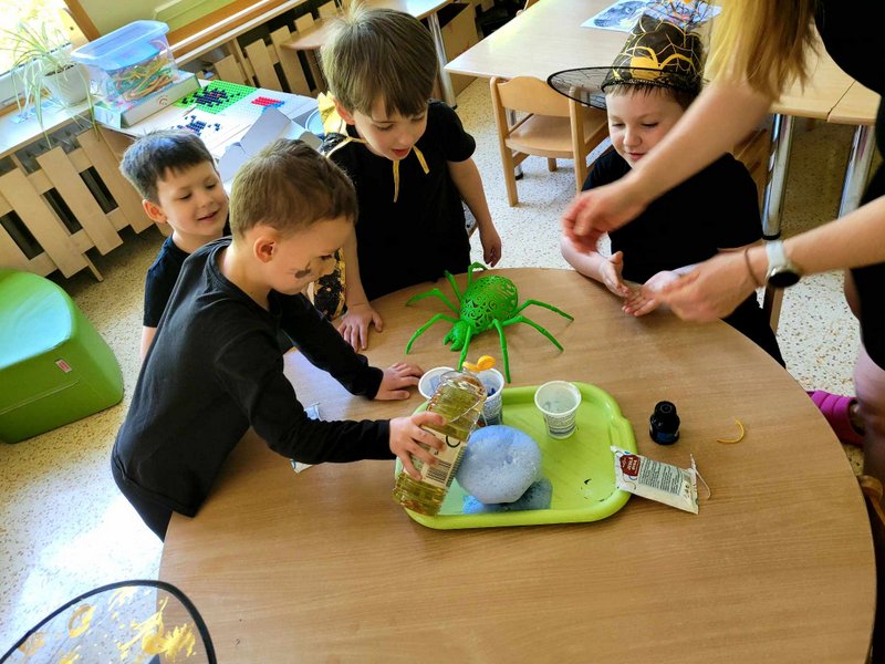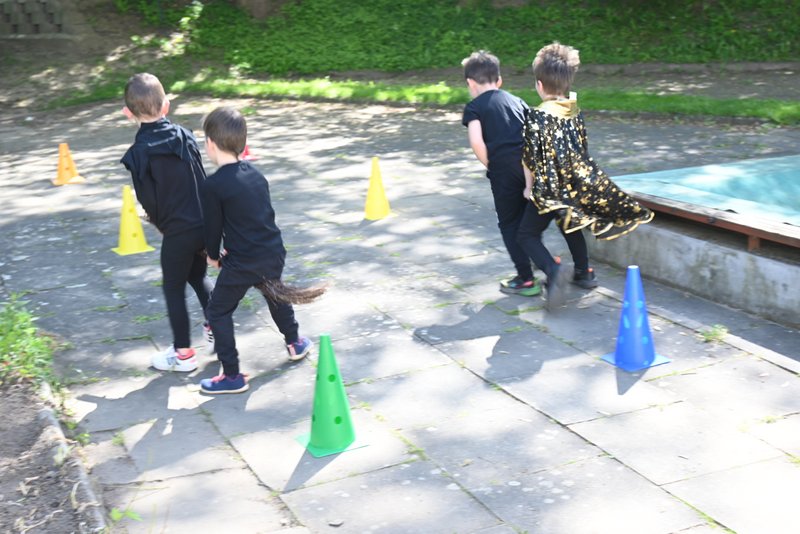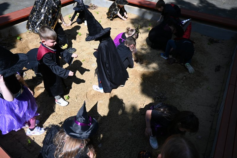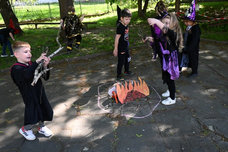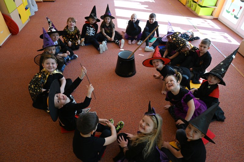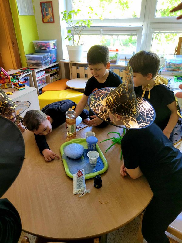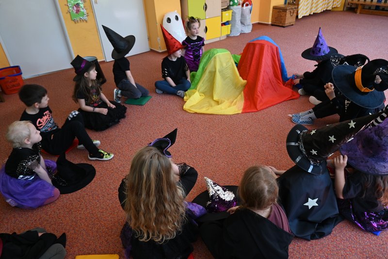 Bylo to ČAROKRÁSNÉ! Moc jsme si to všichni užili! Jízdu na koštěti, hledání pavoučků v písku, strefování do pavučiny, manipulaci s obří vařechou, hledání havrana a ukryté čarodějky, snášení pavoučka z pavučiny, přeskakování ohně, hledání klacíků na „ohýnek“, výroba pavučiny a mnoho dalšího… 🪄🧙🧹🕷️🕸️